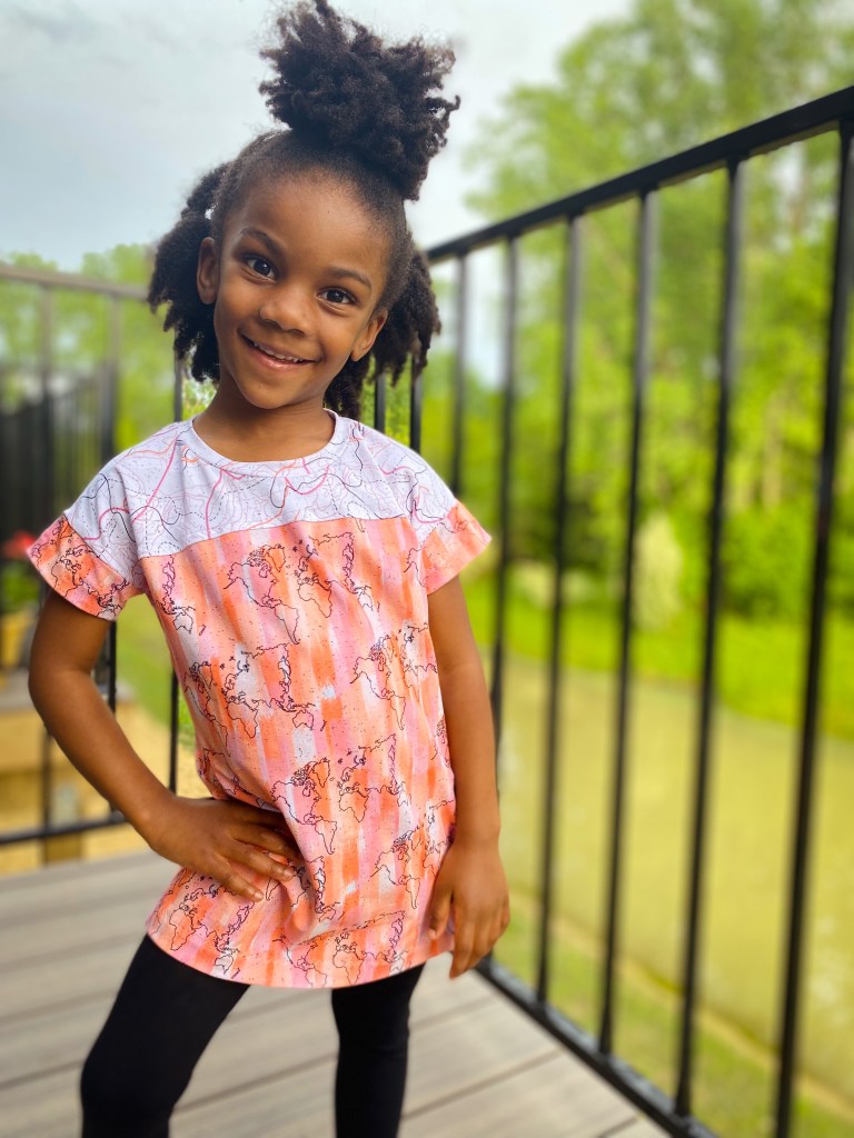 Printed map top: Kit Dolman in youth color blocked and tunic length!
