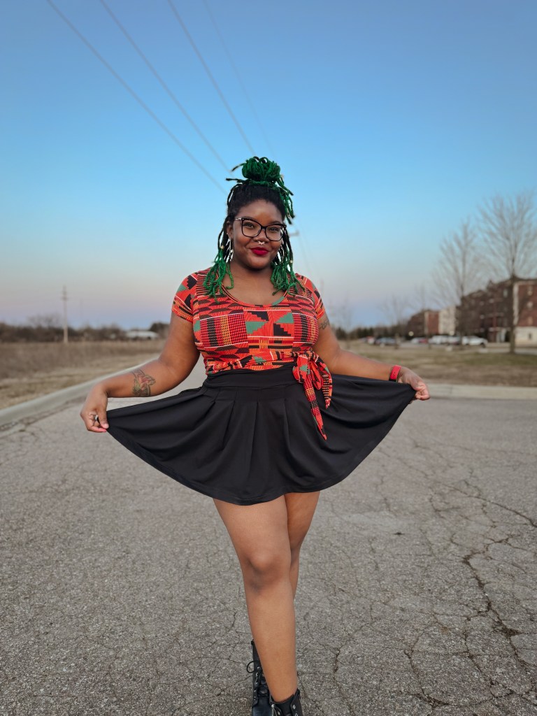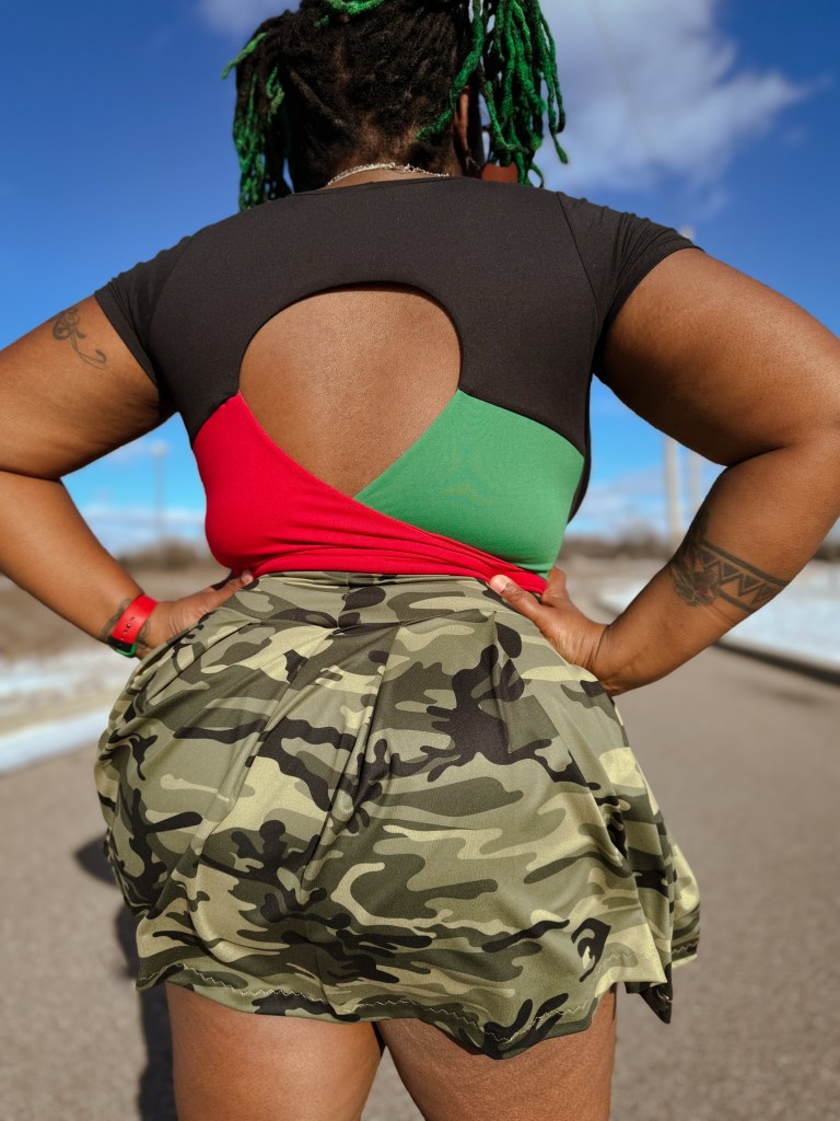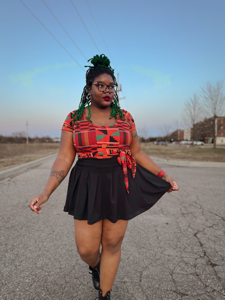 Presley is a pleated skirt that has my heart! I love pleats much more than gathering! Pleats give a simple, neat, and alluring appearance to a make. I’m also a fan of mini skirts but deal with one MAJOR issue. I’m a part of the big booty club, and I have repeatedly dealt with the skirt being high in the back. I add rise to my leggings but have never done so with my skirts. I’m hella late to the party, but I learned how to make an adjustment during testing.