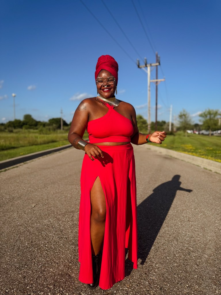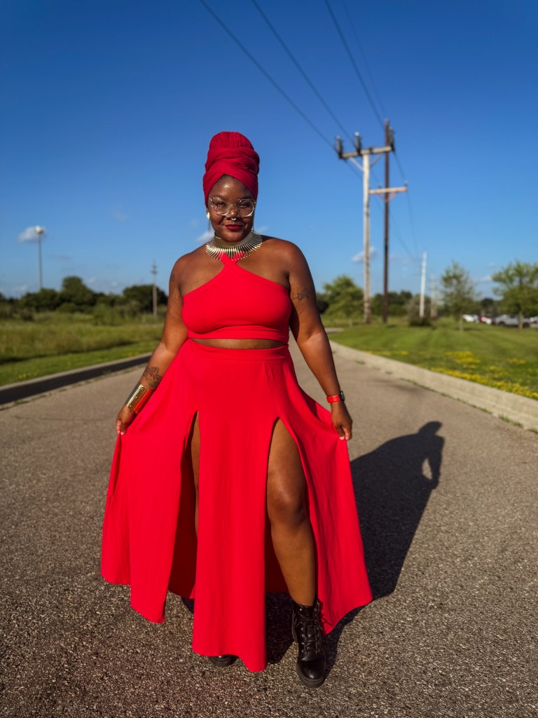Bayyybeeee. This red did something to me now! Kali & Kamali! Red is such a powerful color and it looks reallll good on sun kissed skin. I was desperate for a solid color and was short on time so I bought a 5 yard cut from Amazon. Amazon is not a place I think of when I want to order fabric, but I did this time. Boo for Joann not being around.